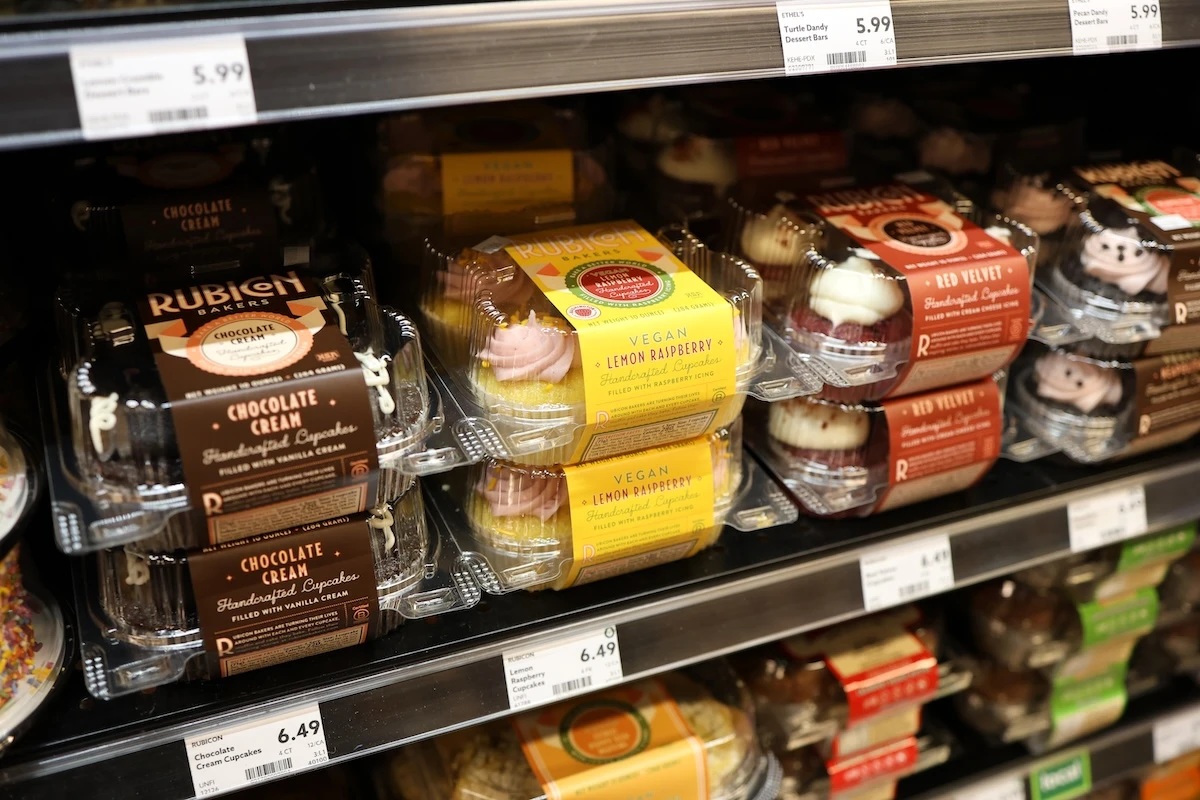 Fresh baked goods in a glass display case